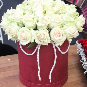 25 White Roses in a Cylinder Box